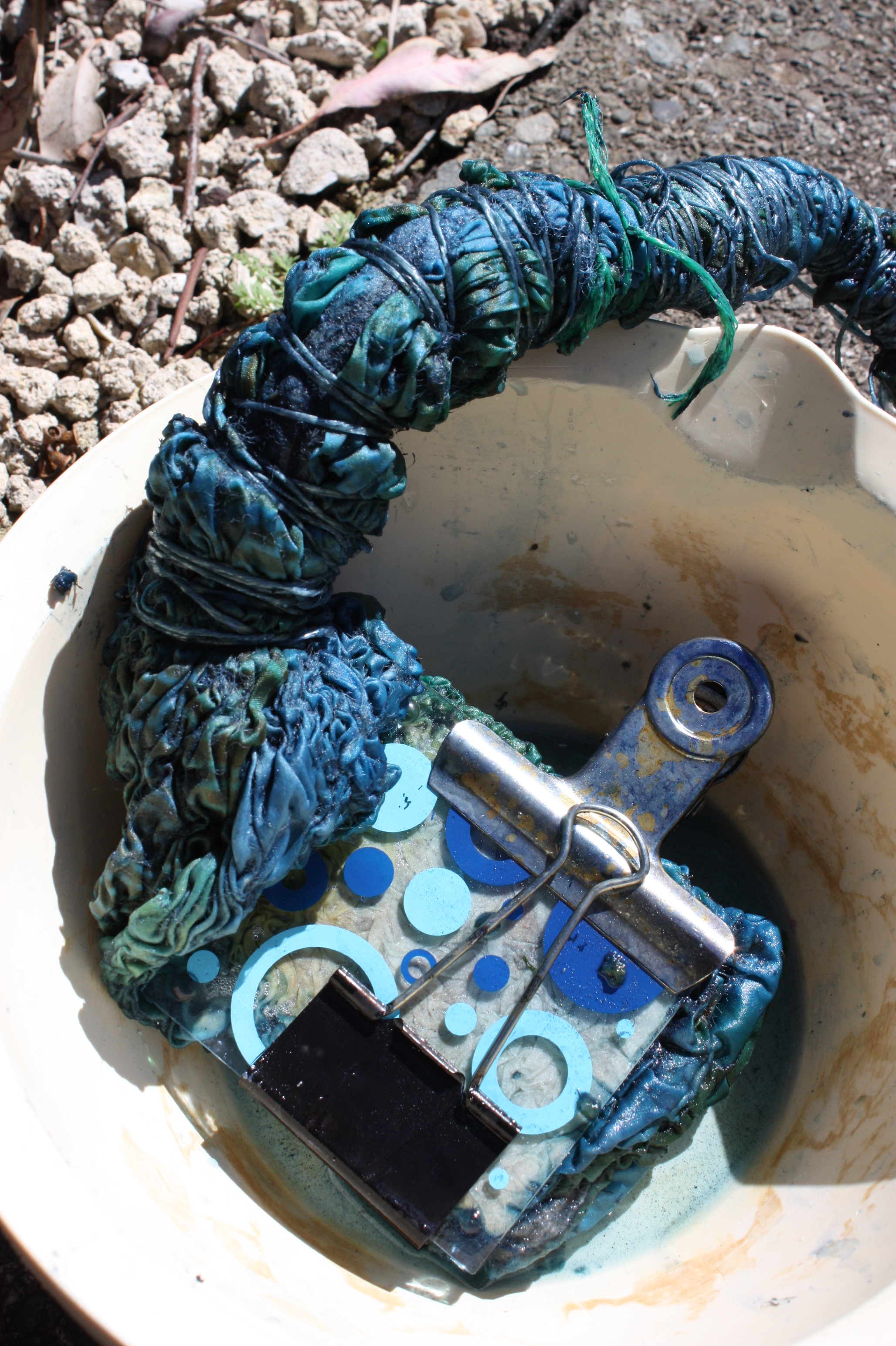 A few experiments with Michel Garcia’s natural indigo recipe and my nuno felt and some good results makes me think the trip to Hong Kong was worthwhile after all!